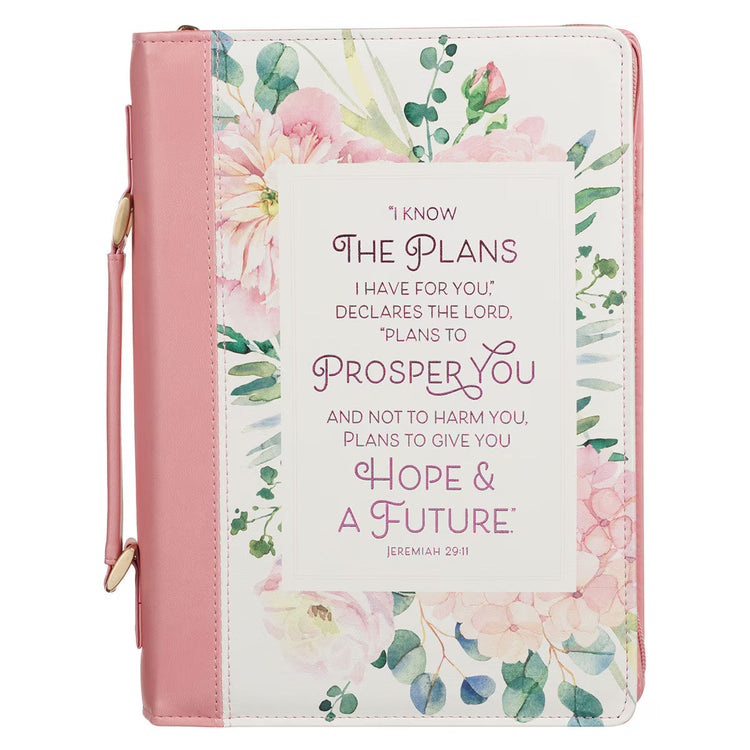 Plans Pink Bouquet Faux Leather Fashion Bible Cover - Jeremiah 29:11